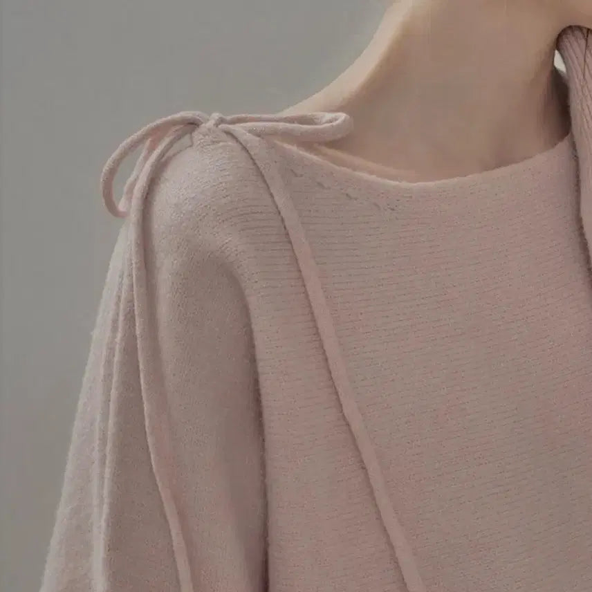 [SOLD OUT] (신품/핑크) 트위 하이티 숄더 리본 니트