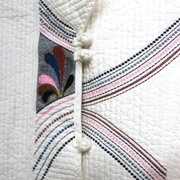 Woman's quilted top with embroidery.