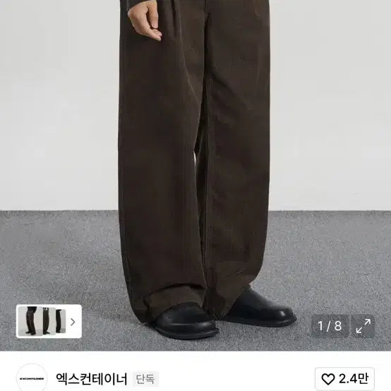 엑스컨테이너 브라운 색상 코듀로이 와이드 팬츠입니다. 트렌디한 와이드핏이라 어디에나 잘 어울립니다. 벨트와 코디하여 포멀하게 연출도 가능합니다. 문의 없으시면 바로 안전결제해주시면 됩니다!