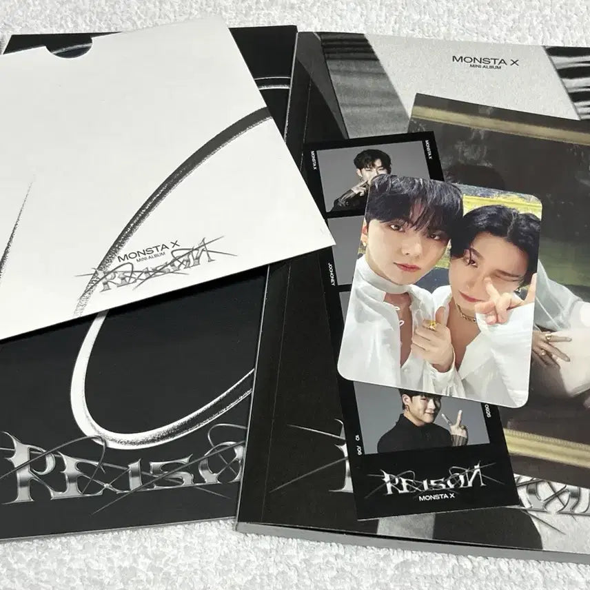 몬스타엑스 Reason 앨범 버전1 판매합니다. 겉에 비닐 커버만 벗긴 완전 새 상품입니다. 포카 포함 모든 구성품 들어있습니다