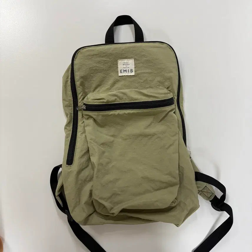 This Emis backpack, purchased some time ago, shows minor signs of use and some light marks. The thick straps ensure comfortable wear, and the design is appealing.