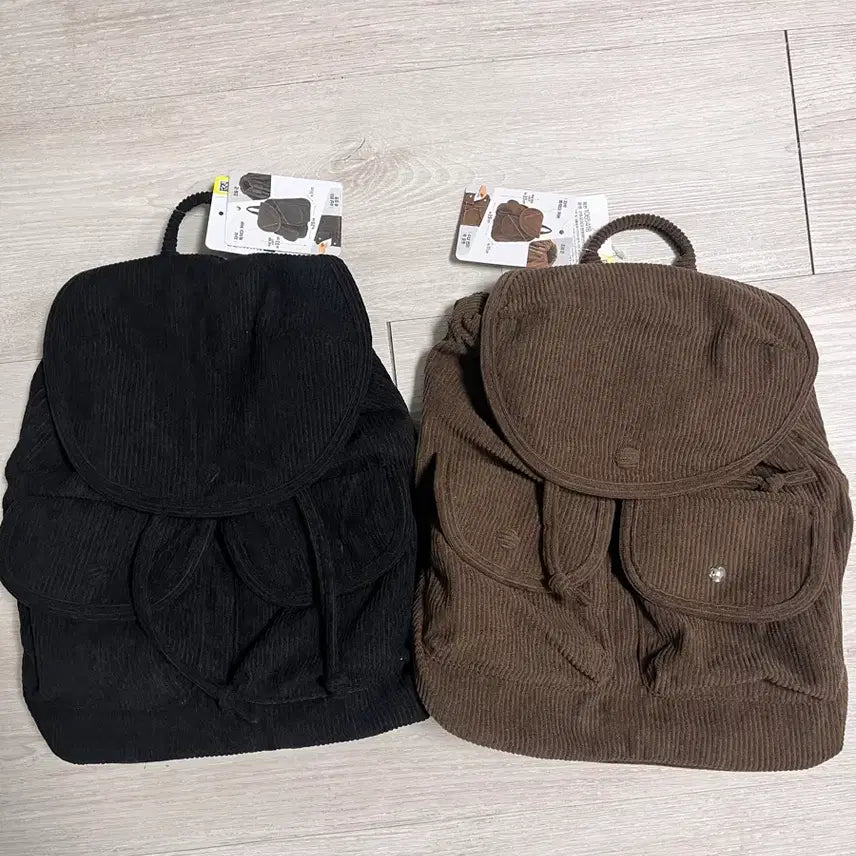[BUNJANG] Daiso Corduroy Pocket Backpack Bundle Set / 다이소 코듀로이 포켓 백팩 블랙/브라운 새상품 일괄