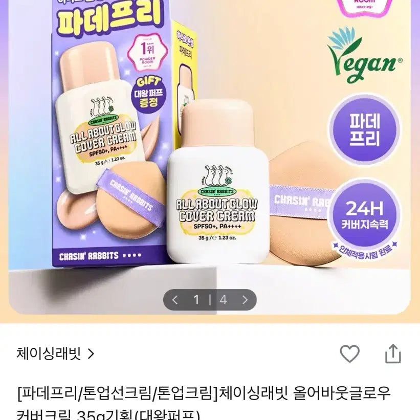 [BUNJANG] Chasing Rabbits All About Glow Cover Cream 35g with Puff / 체이싱래빗 올어바웃글로우 커버크림 35g기획(대왕퍼프)