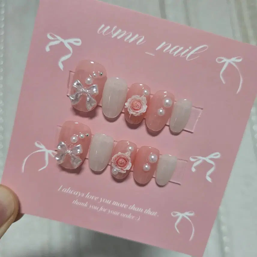 [BUNJANG] Handmade Silk Rose Nail Tips / 실크장미 수제네일팁