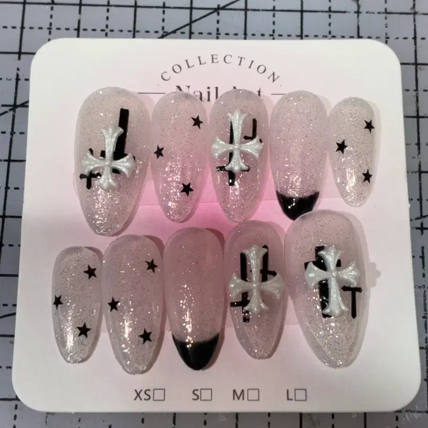 [BUNJANG] Handmade Glitter Cross/Star Nail Tips / 수제 글리터 십자가/별 네일팁