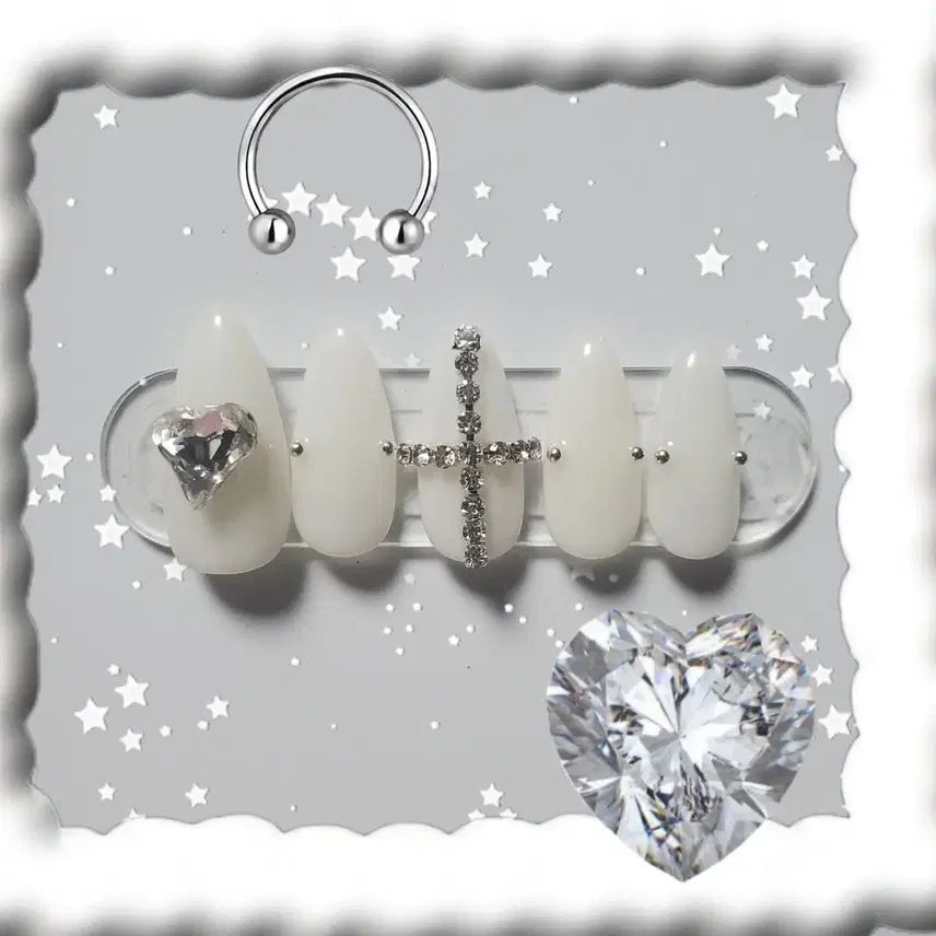 [BUNJANG] White Stone Heart Cross Nail Set / 화이트 스톤하트 십자가 네일