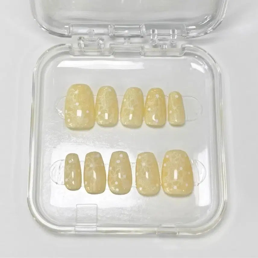[BUNJANG] Custard Spring Lace Handmade Nail Tips / 커스터드 봄 레이스 수제네일팁