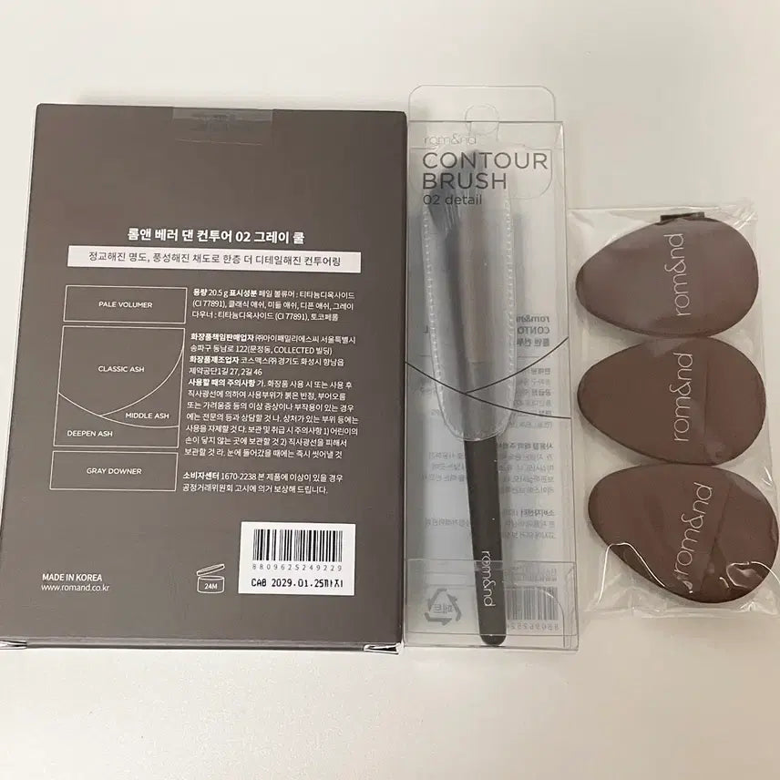 [BUNJANG] Rom&nd 02 Gray Cool Contour Kit / 롬앤 베러 댄 컨투어 02 그레이 쿨 + 브러쉬 + 핑거 퍼프