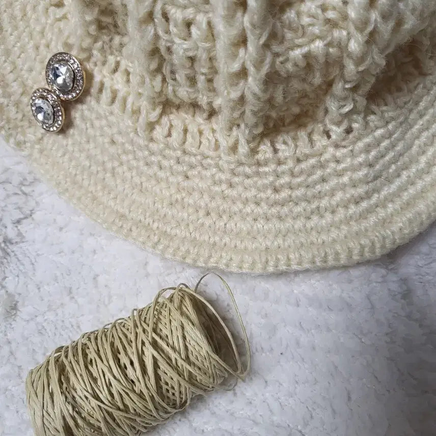 [BUNJANG] Handmade Ivory Knit Bucket Hat / 아이보리 니트 벙거지 모자