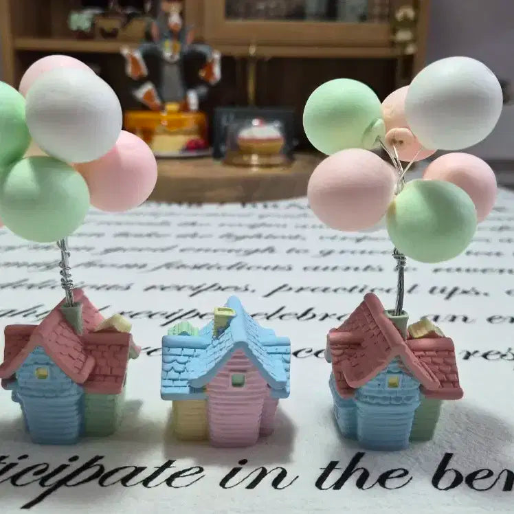 풍선집 미니어처 피규어 세트 입니다. 앙증맞은 미니어처 사이즈라 좁은 공간에도 잘 어울립니다. 파스텔톤 색감의 풍선이 달려있어 귀여움을 더했습니다.