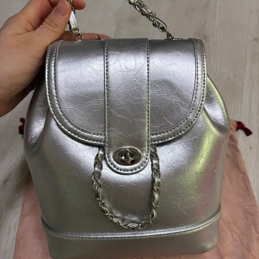 [BUNJANG] Cardinal Red Howa Bag Silver Chain Backpack / 카디널레드 하우아백 실버 체인 백팩