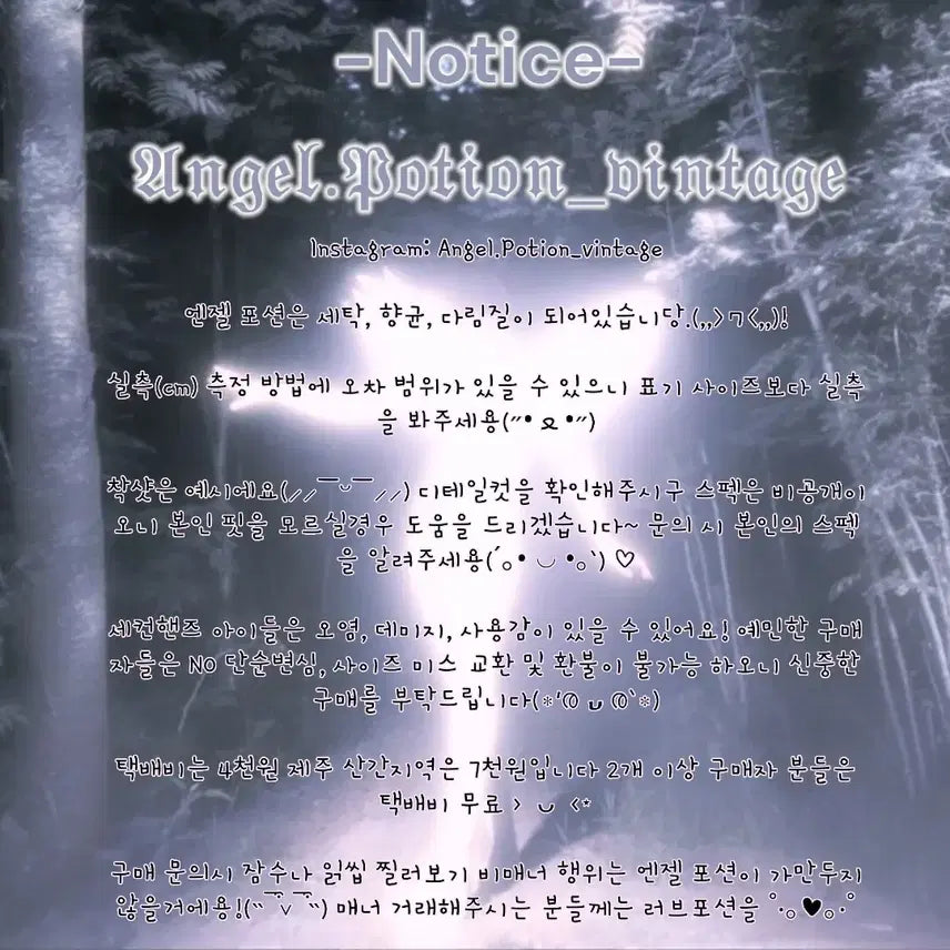 엔젤포션 빈티지샵은 개성 있고 감각적인 빈티지 아이템을 사랑하는 사람들을 위한 특별한 상점입니다. 과거의 아름다움과 독창성을 간직한 의류, 액세서리, 소품들이 가득하며, 각 제품은 그 자체로 스토리를 지니고 있습니다. 엔젤포션은 단순한 빈티지샵을 넘어, 시간이 지나도 변치 않는 가치를 지닌 아이템들을 통해 새로운 스타일을 제안합니다.