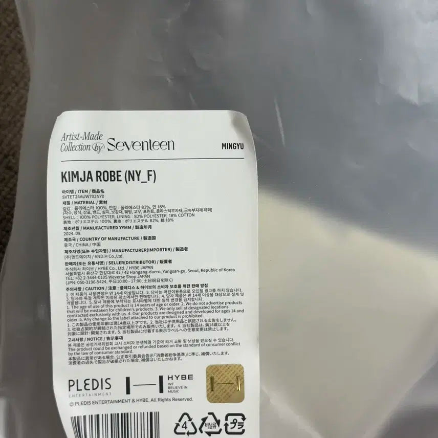 세븐틴 민규 아티스트메이드 가운 새상품입니다 구매하고 열어보지 않았습니다 택배로 보내드립니다