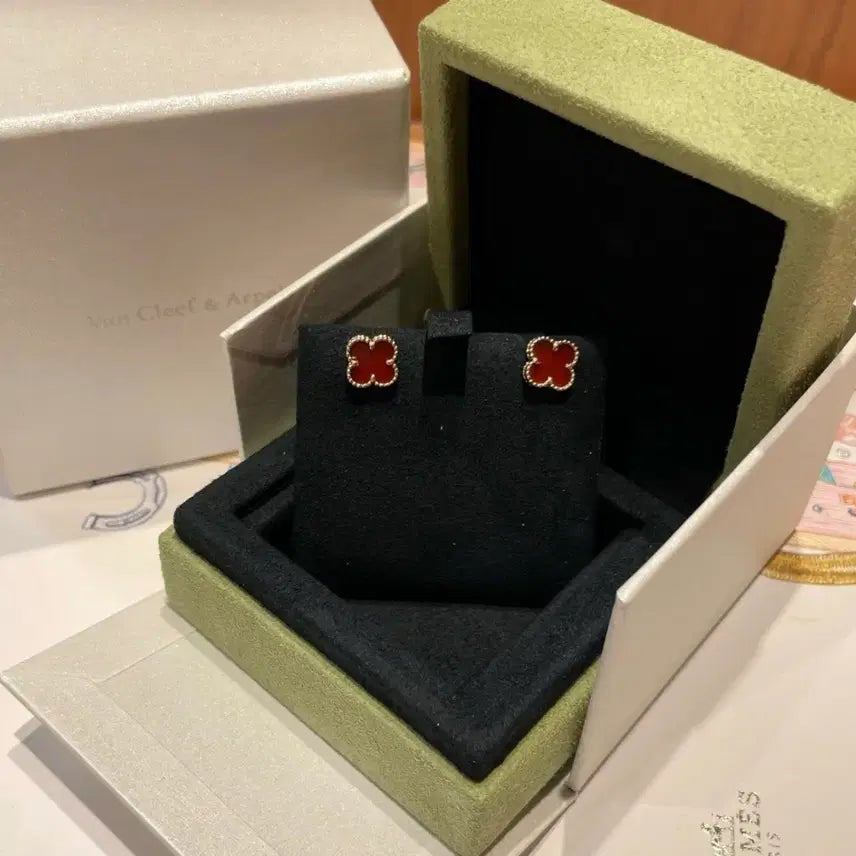 [BUNJANG] Van Cleef & Arpels Sweet Alhambra Red Agate Earrings / 반클리프 아펠 스위트 알함브라 레드 아게이트 피어스