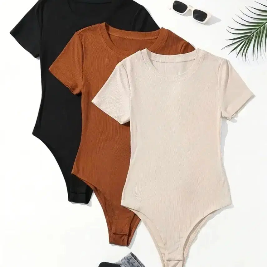 [BUNJANG] Basic Ribbed Short Sleeve Bodysuit / 골지 반팔 바디수트 블랙/베이지/브라운 66사이즈