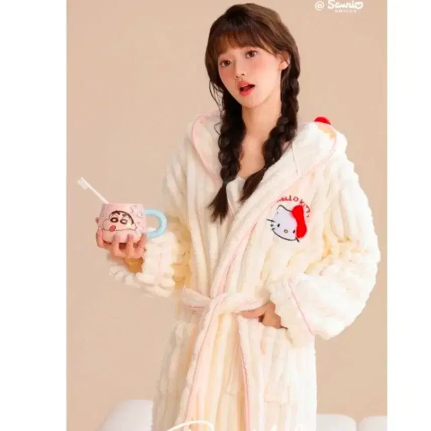 [BUNJANG] Sanrio Hello Kitty Microfiber Shower Robe / 정품 산리오 헬로키티 극세사 샤워가운 목욕가운