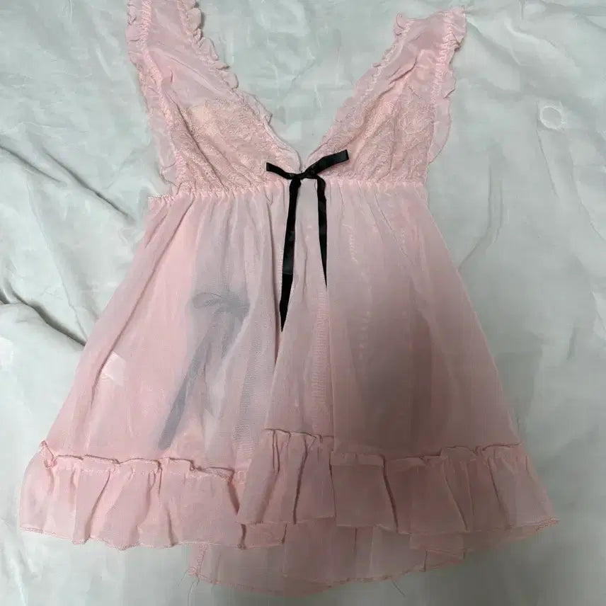 [BUNJANG] Pink Fairy Lace Long Nightgown Set / 핑크페어리 레이스 핑크 롱 나이트 가운 3세트 빈티지 페어리 엔느 몬니