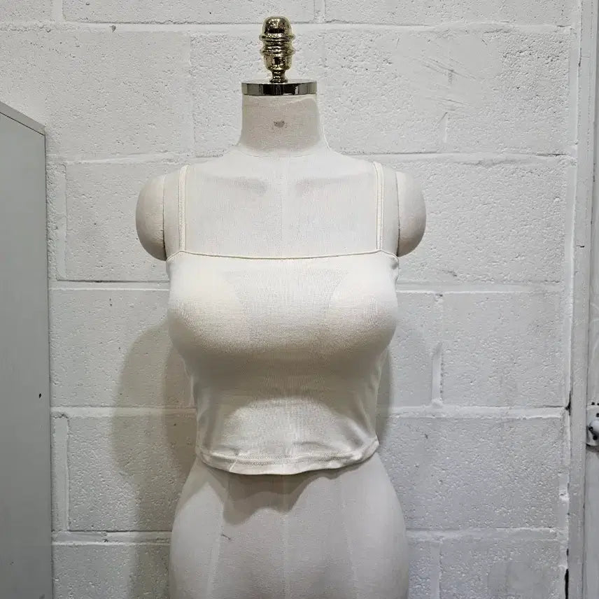 [BUNJANG] Basic Crop Tank Top - Ivory / 캡내장 크롭 무지 나시- 아이보리