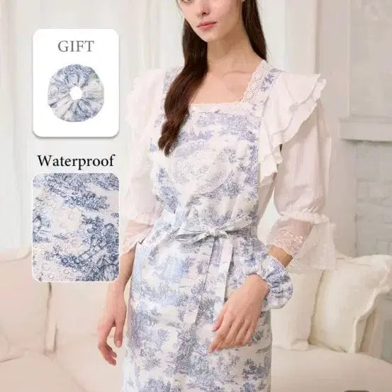 [BUNJANG] DeBeurre Bebe Twill Waterproof Apron & Scrunchie Set - Blue / 드브르베 트왈 방수 앞치마 + 머리끈 세트 블루