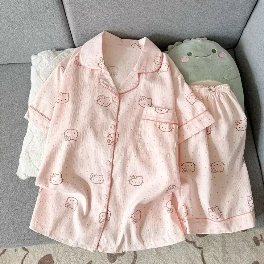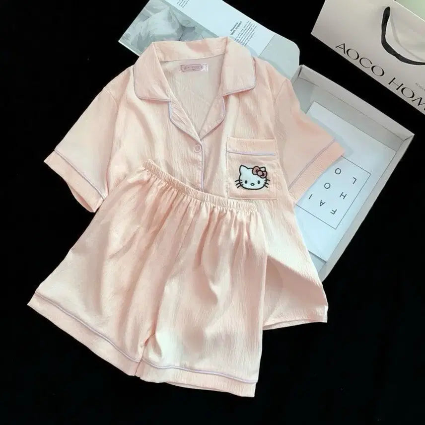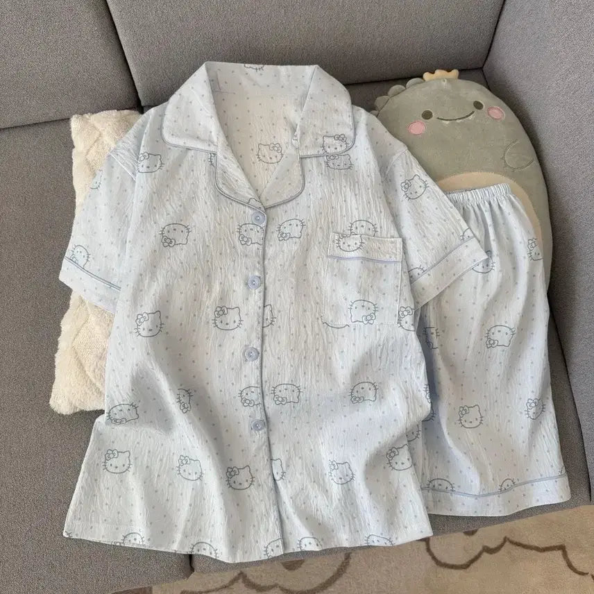 [BUNJANG] Hello Kitty Pajama Set (Sky Blue/Pink) / 헬로키티 반팔 파자마 세트 하늘/핑크