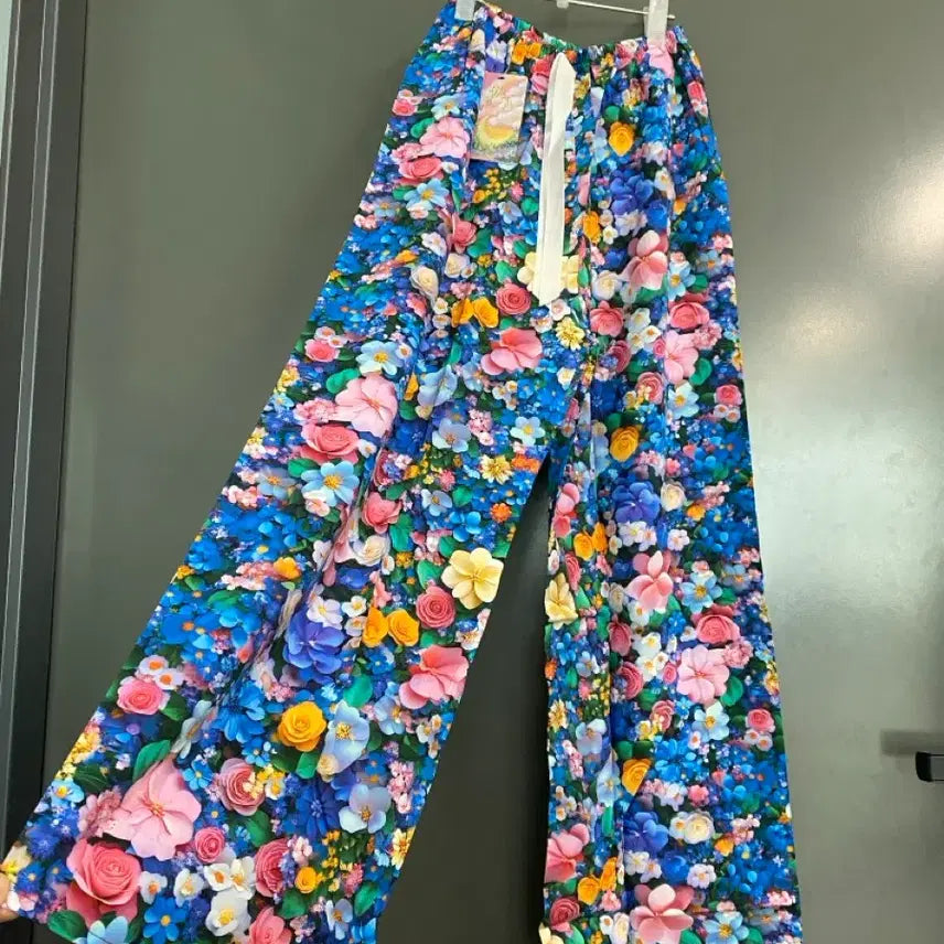 [SOLD OUT] [ 새상품 ] 인견 화려한 꽃무늬 와이드 팬츠 바지 홈웨어 시원한바지