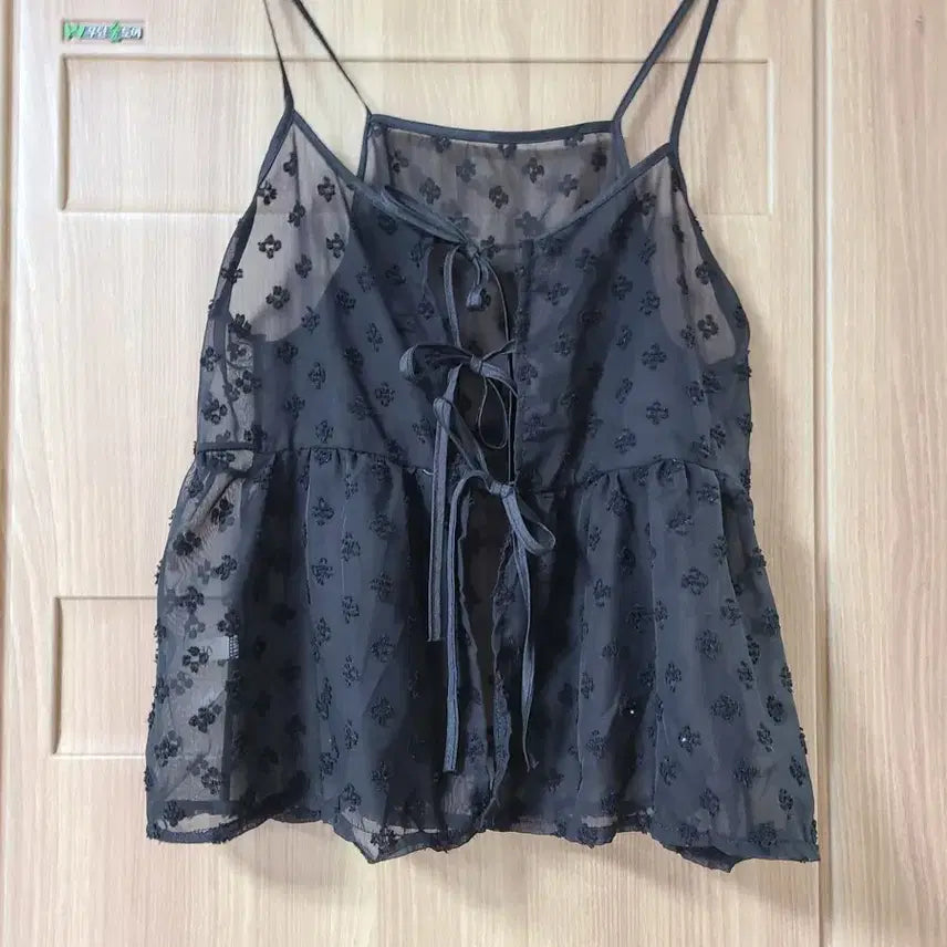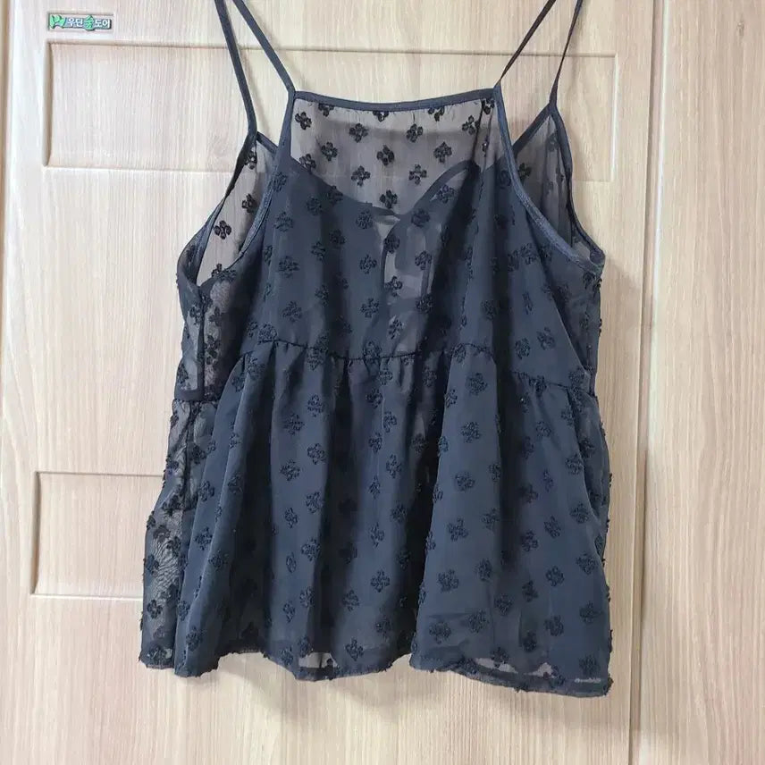 [BUNJANG] Black See-Through Floral Camisole Slip Layered Top / 블랙 시스루 플라워 나시 슬립 레이어드