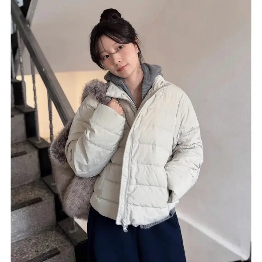[BUNJANG] Ivory Hooded Lightweight Padded Jacket / 아이보리 후드 경량 패딩 (새거)
