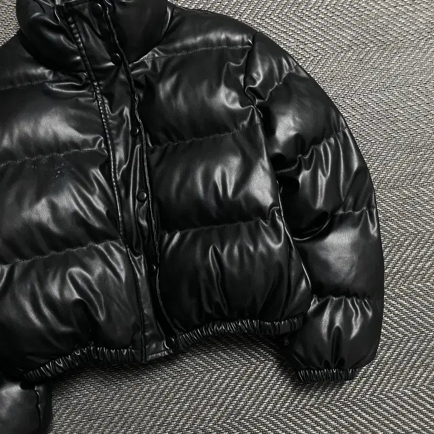 [BUNJANG] FANDY LOKAR Black Leather Crop Short Padded Jacket / FANDY LOKAR 블랙 레더 크롭 숏패딩o 5245
