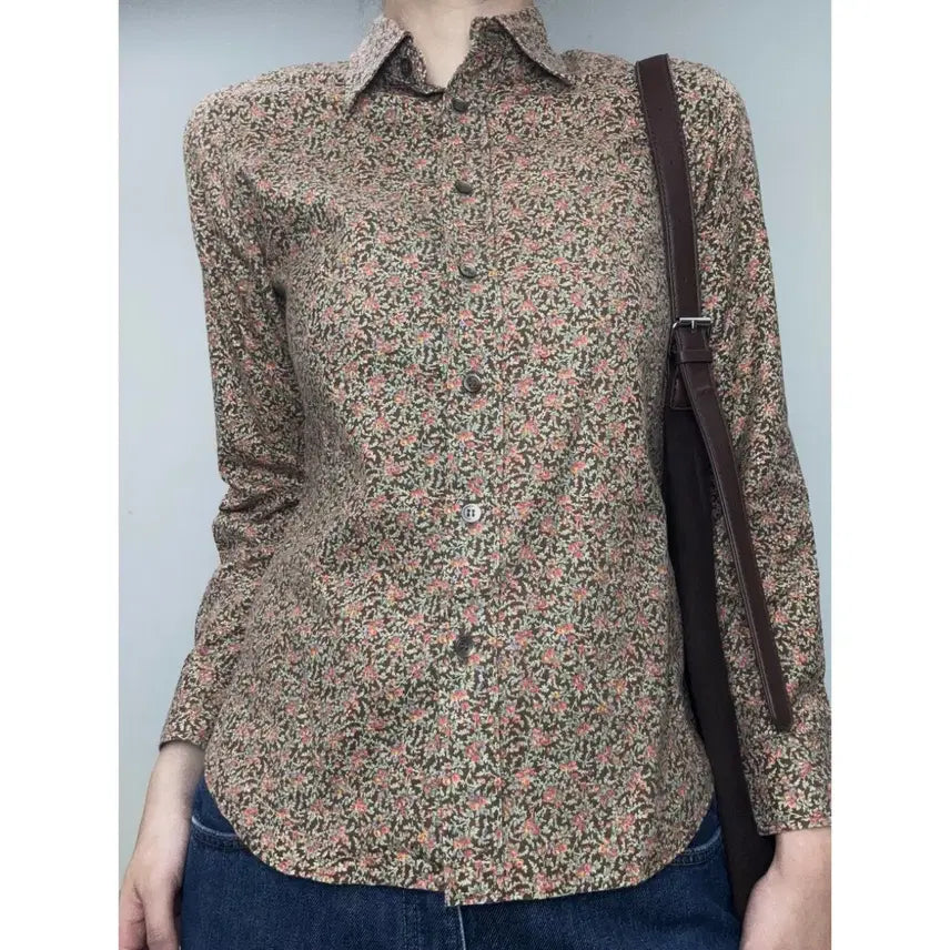 [BUNJANG] PLAY HOUSE Floral Print Vintage Shirt / 일본빈티지 브라운 플로럴 셔츠