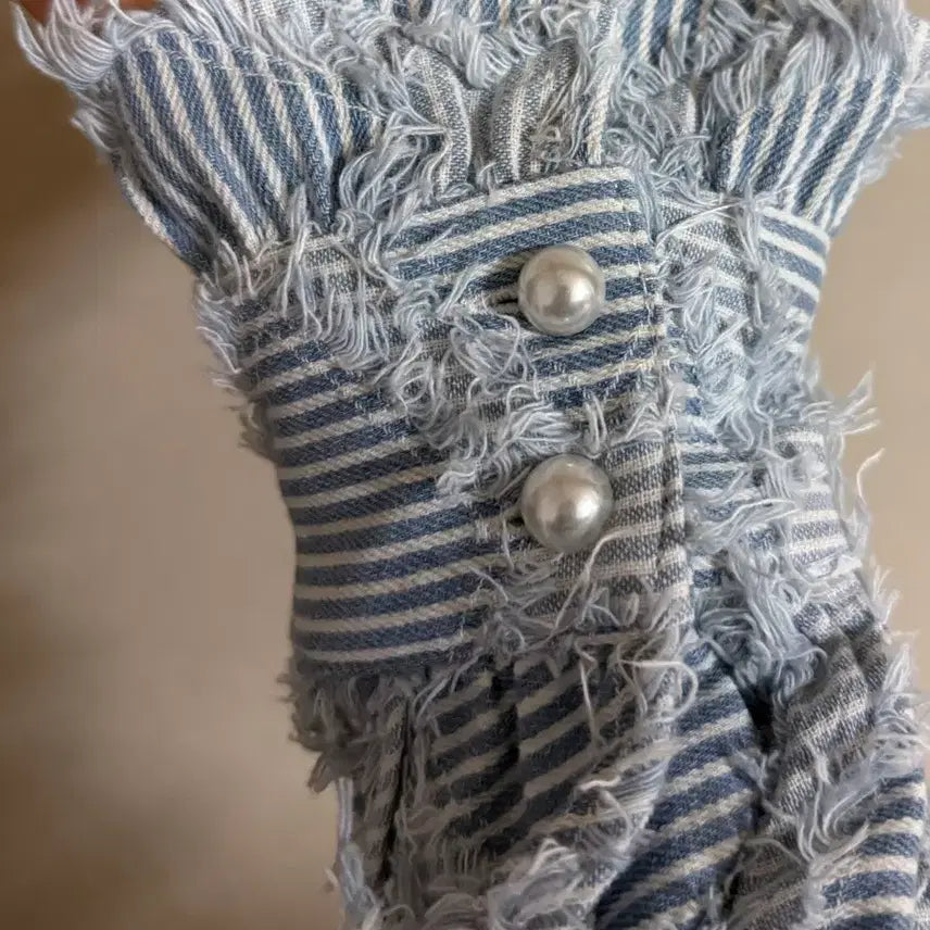 [BUNJANG] Stripe Denim Shirt / 청량 스트라이프 데님 셔츠 데미지 스타일