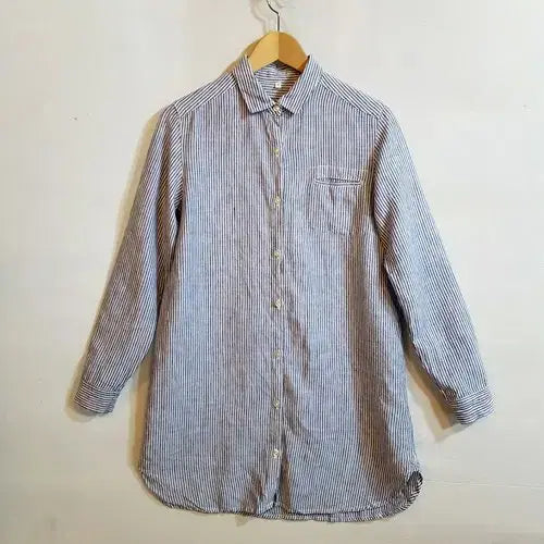 [BUNJANG] MUJI Linen 100% Striped Long Shirt / 무인양품 MUJI 린넨 100% 스트라이프 롱 셔츠