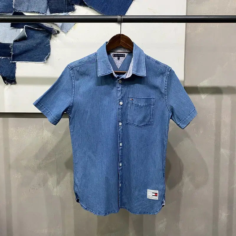 [BUNJANG] Tommy Hilfiger Women's Denim Pocket Shirt / (90) 타미힐피거 여성 캐주얼 포켓 반팔 데님 셔츠 청남방