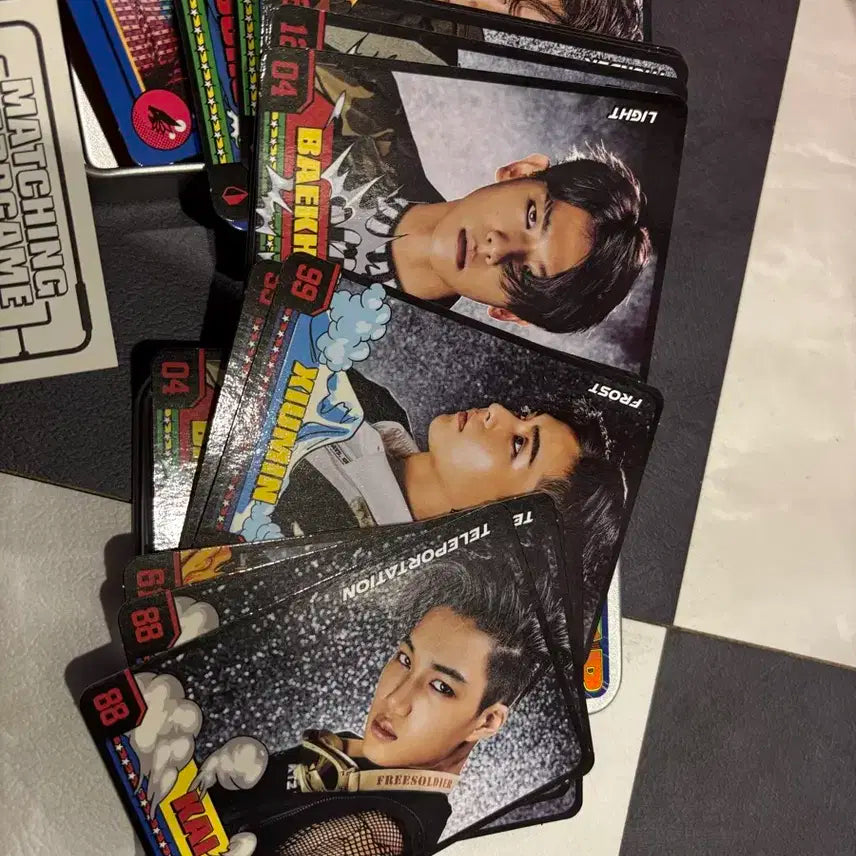 엑소 파워 카드 게임 세트 틴케이스입니다. 틴케이스에 파워 오브 뮤직이라고 적혀있고, 엑소 멤버들 얼굴이 프린팅 되어있습니다. 엑소 팬분들이라면 소장가치 충분합니다. 별도 문의 없으시면 바로 안전결제 부탁드려요! 교환❌ 환불❌ Gs25 반택 일택 이용