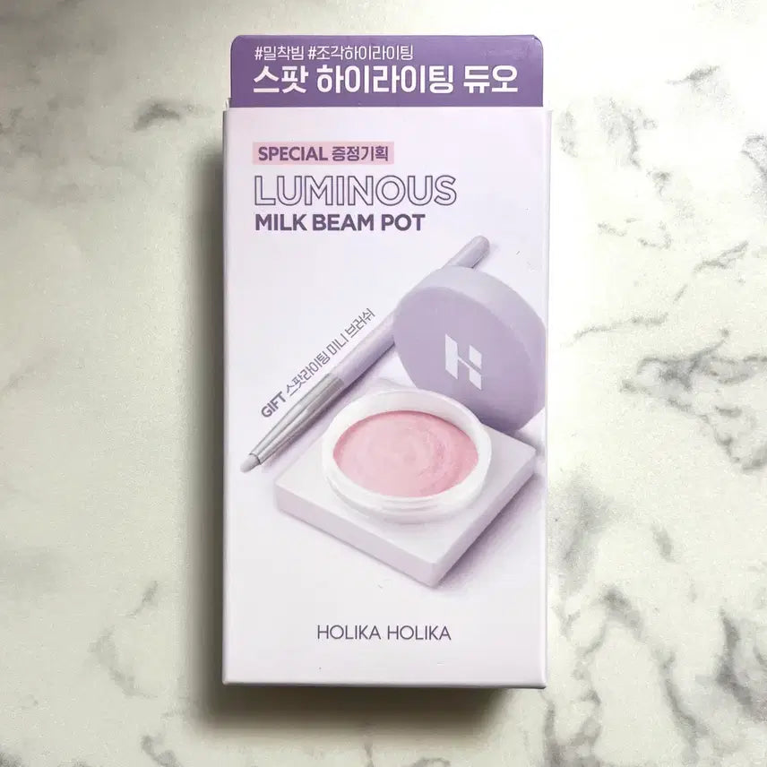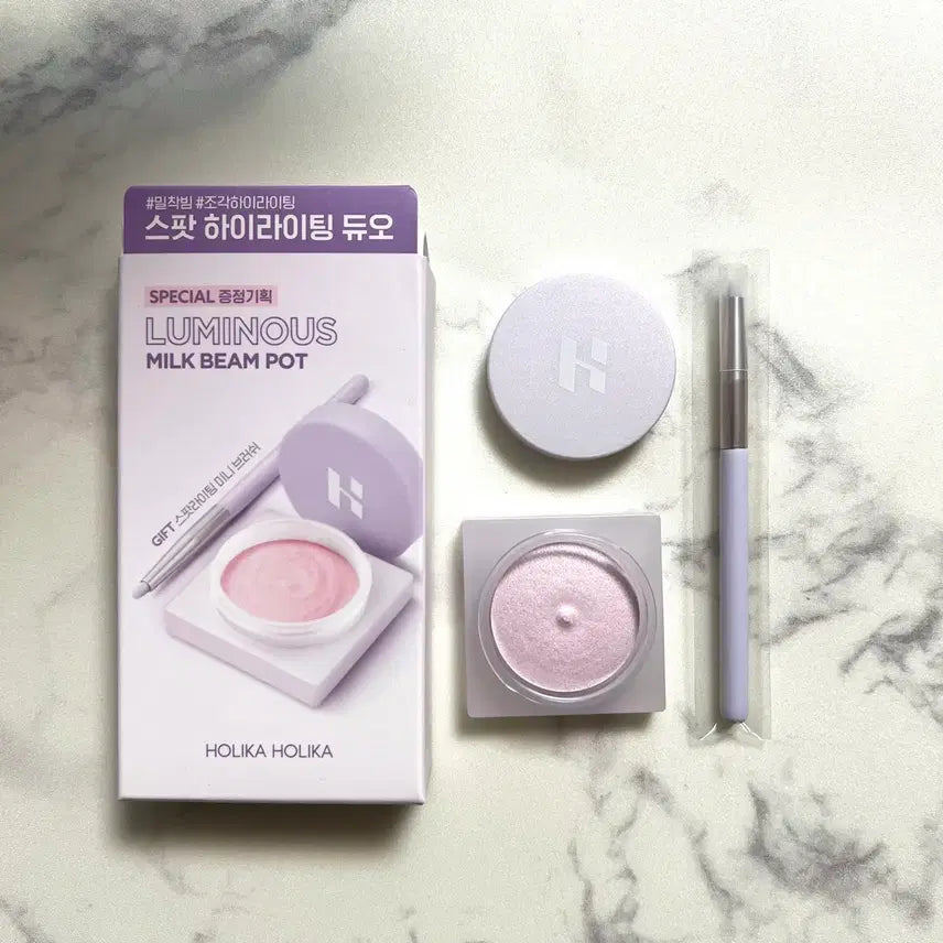 [BUNJANG] Holika Holika Moon LoRa Luminous Milk Beam Pot Highlighter with Brush Set / 홀리카홀리카 루미너스 밀크빔 팟 04문로라 브러쉬 기획세트 팟 하이라이터