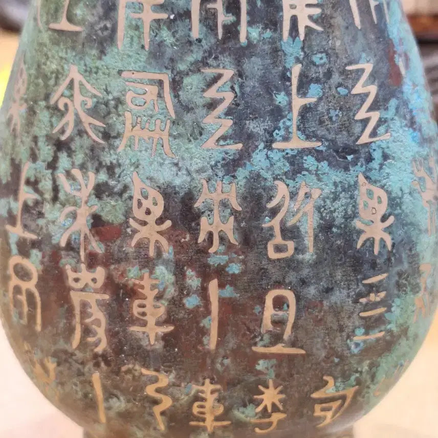 동화병에 은입사로 정교하게 새겨진 글씨가 인상적입니다. 골동품 특유의 세월감이 느껴지는 색감 또한 매력적입니다. 앤틱 소품 좋아하시는 분들께 추천드려요. 문의 없으시면 바로 안전결제해주시면 됩니다!