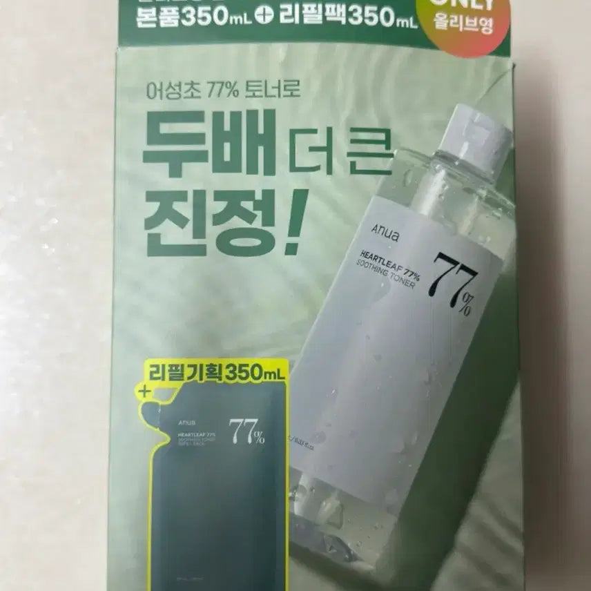 아누아 어성초 77 수딩 토너 본품 350ml와 리필 350ml 세트입니다. 유통기한 ~26.5.15까지입니다.