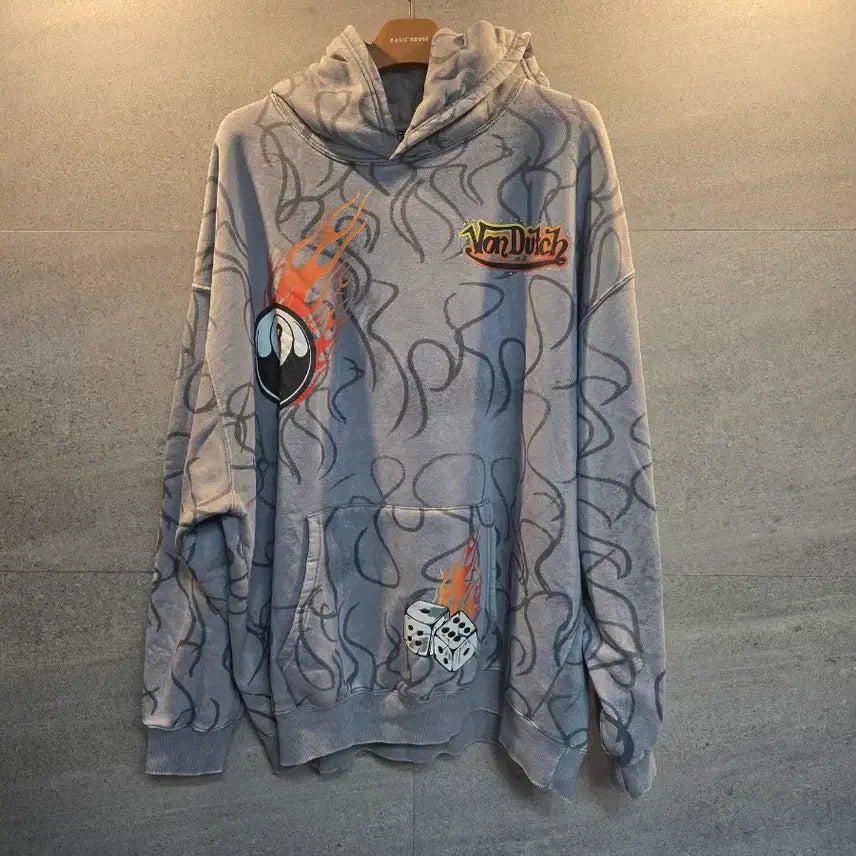 This Bon Dutch hoodie and training pants set features unique graphic designs including flames, an 8-ball, dice, cards, and angels.