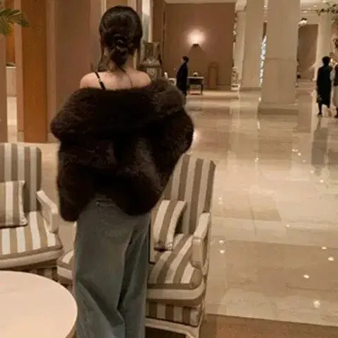 [BUNJANG] Brown Faux Fur Short Jacket / 브라운 퍼 숏 자켓(프리사이즈)