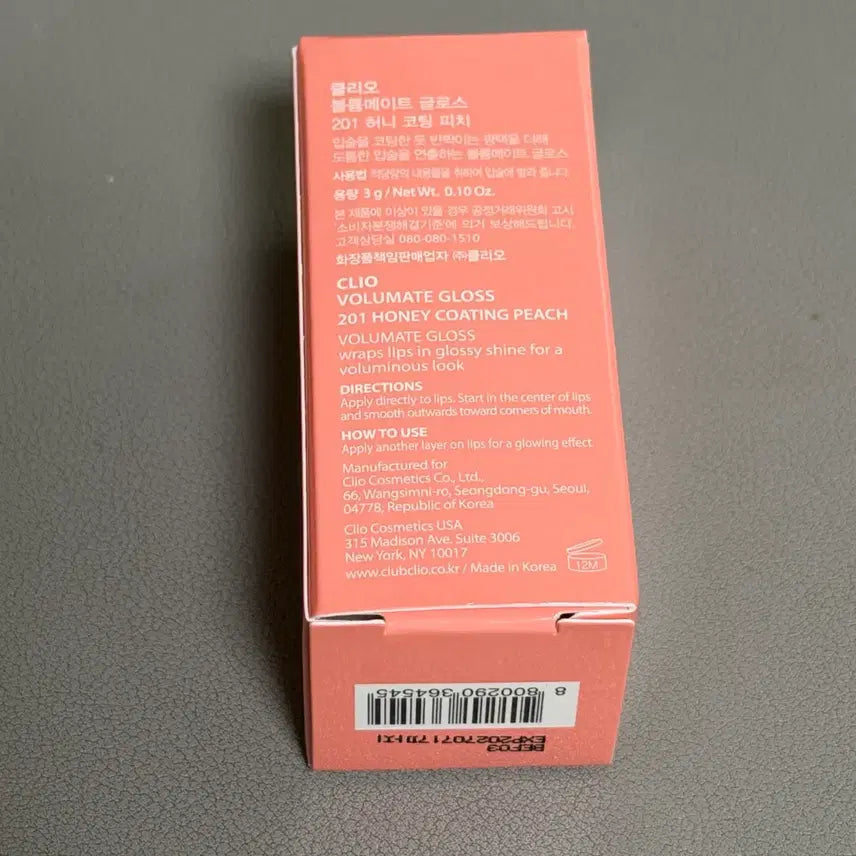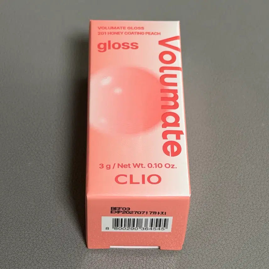 Achieve plump, voluminous lips with the Clio Volume Matte Gloss in the Honey Coating Peach shade. This lip gloss provides a hydrating and volumizing effect. It is a sealed, new product. The expiration date is July 17, 2027. The item will be shipped in its original gift packaging.