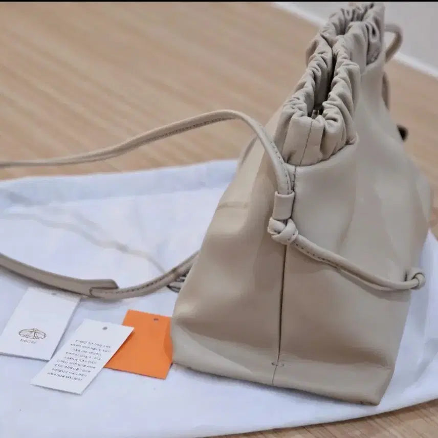 The DECKE Kim Na Young Flow Bag in oatmeal color. It's a women's shoulder bag with a handle. Made of genuine leather. Only worn once and stored in a dust bag. Includes price tag and tag. Mint condition.