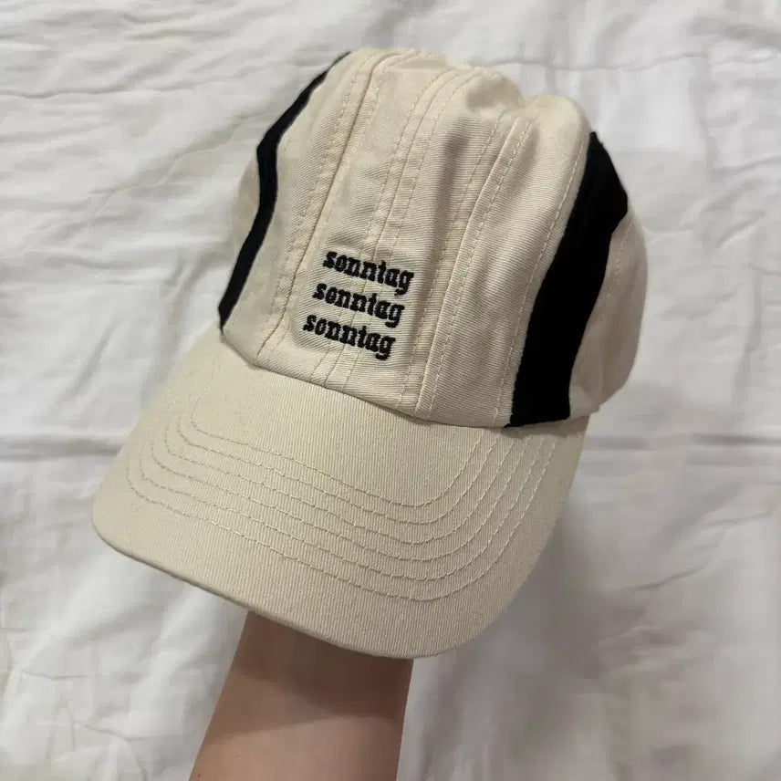 아이보리색 볼캡 모자 판매합니다. 검정색 포인트가 들어가 있어서 유니크하고 예뻐요. 캐주얼한 코디에 잘 어울립니다. 안에 사용감 확인하시구 연락주세요