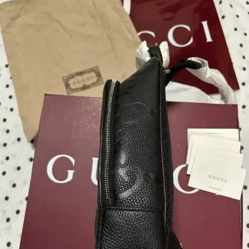 구찌 점보 슬링백 새상품 판매합니다. 블랙 색상의 가방 전면에 구찌 로고가 돋보입니다. 더스트백, 쇼핑백, 북렛등 구매 시 받은 구성품 그대로 드립니다. 문의 없으시면 바로 안전결제해주시면 됩니다!