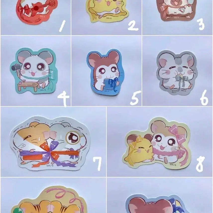 A set of Hamutaro die-cut stickers released by Seria in Japan. This set includes 10 out of 15 available designs.