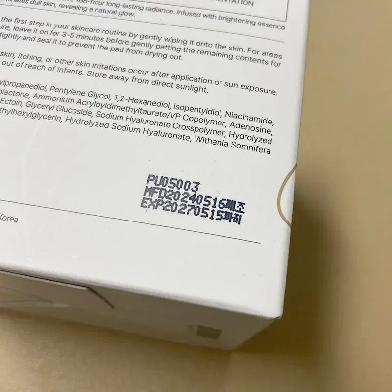 1. 제품명/브랜드: 주미소 안티옥시던트 글로우 토닝 패드 70매