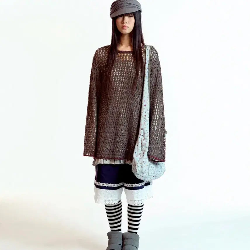 [BUNJANG] Koiseiyo Bottom Multiple Frill Dress + Hole Knit / 코이세이오 바텀 멀티플 프릴 드레스 + 홀 니트