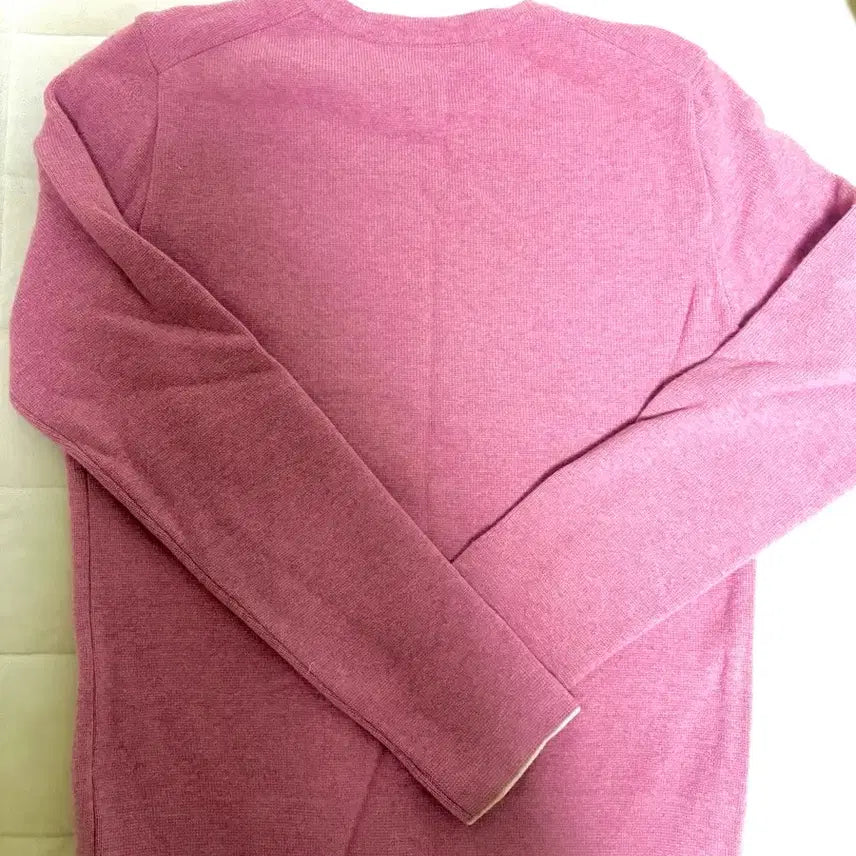 This Lacoste pink knit long sleeve shirt features a muted pink color, offering a calm and elegant look. The white line detailing adds a touch of sophistication. Purchased from the Shinsegae Department Store Gangnam for approximately ₩200,000.