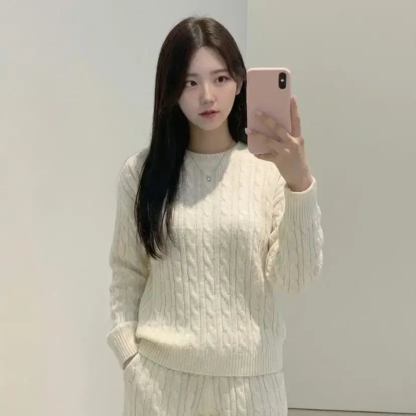 꽈배기 짜임이 매력적인 니트 셋업 입니다