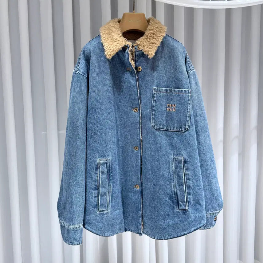 * **Product Name:** Miu Miu Shearling Embroidered Denim Blouson Jacket