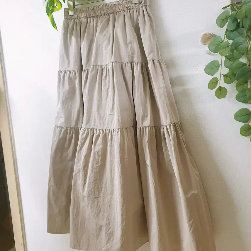 도톰 네추럴볼륨 롱스커트 55 66 밴딩 캉캉 베이지