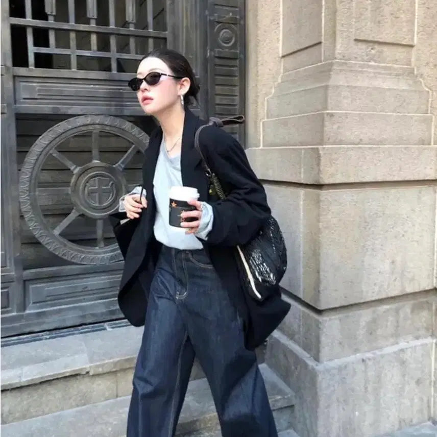 These selvedge denim jeans are made with a sturdy fabric. They have a wide fit, draping across the hips, and a generous waist. Shorter individuals can roll them up twice for a flattering fit without sacrificing style. Taller individuals can also adjust the rolls to achieve a more natural fit. I personally bought these because I loved the subtle vertical pattern of the selvedge denim. The buckle at the back makes them stylish even with a light top, even in the middle of summer. I highly recommend them. They're perfect for casual wear or paired with stilettos for a more formal look.